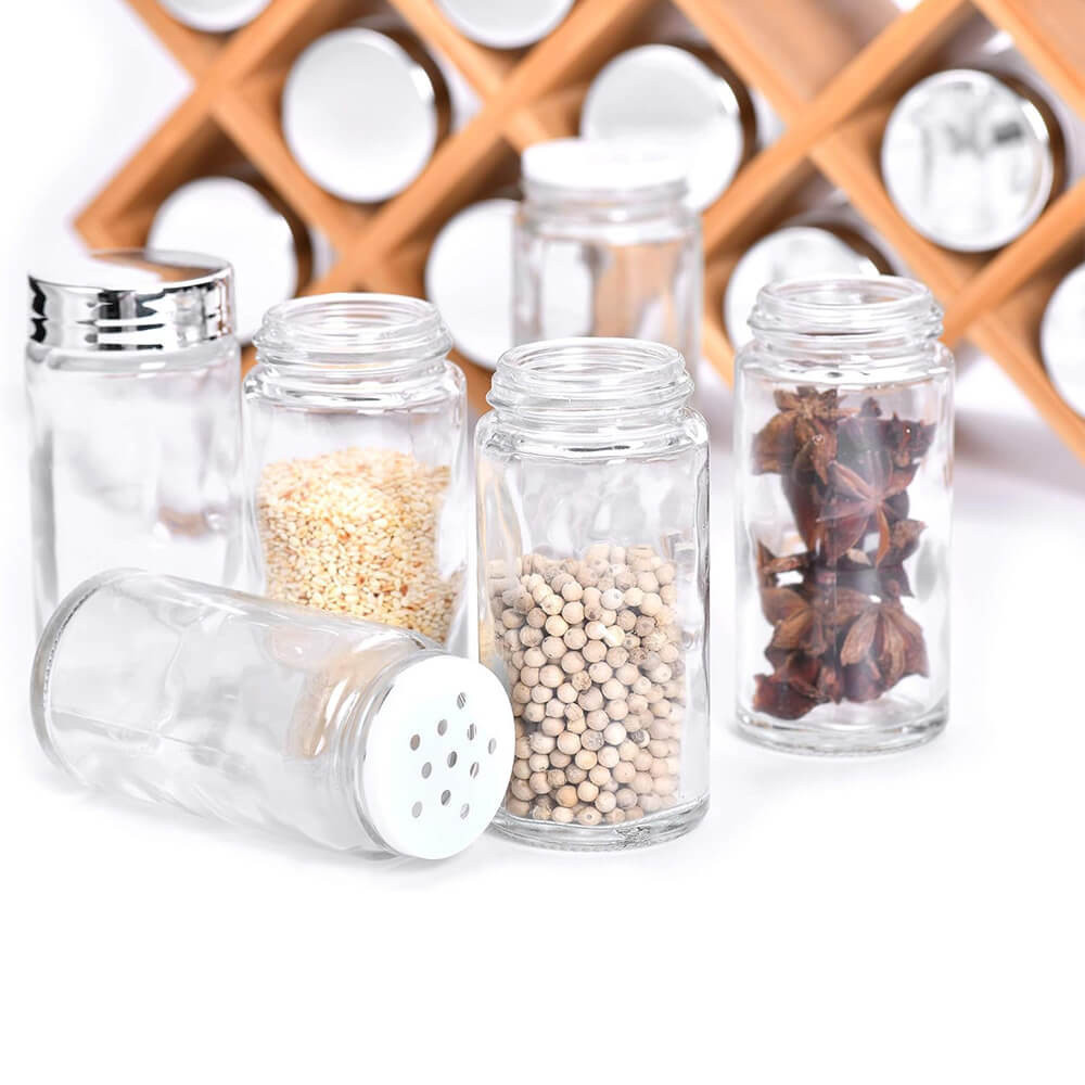 A csomagban található 18 db szórófejes fűszertartó üveg biztosítja, hogy minden fontos fűszernek saját helye legyen. A kompakt méretű üvegek kényelmesen tölthetők és újracímkézhetők a mellékelt írható matricákkal.