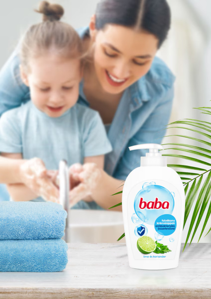 A Baba márka egyik legnépszerűbb terméke a Baba folyékony szappan 250ml. Ez a termék a kamilla jótékony hatásait is magában foglalja.