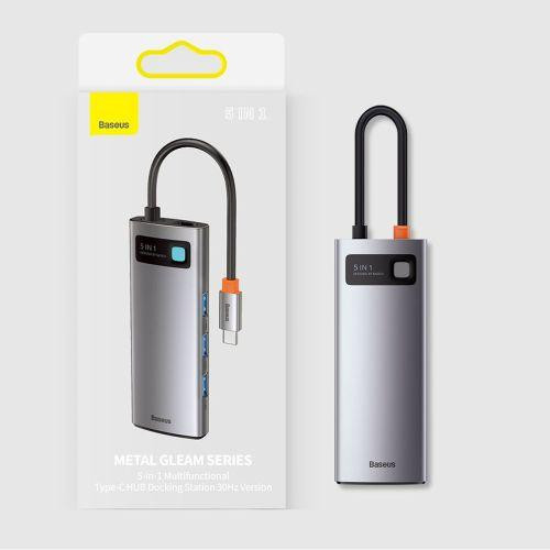 Baseus HUB Metal Glam Series 5-in-1 (3xUSB-A 3.0, Type-C male, Type-C female, HDMI-A), Gray EU (WKWG020013)