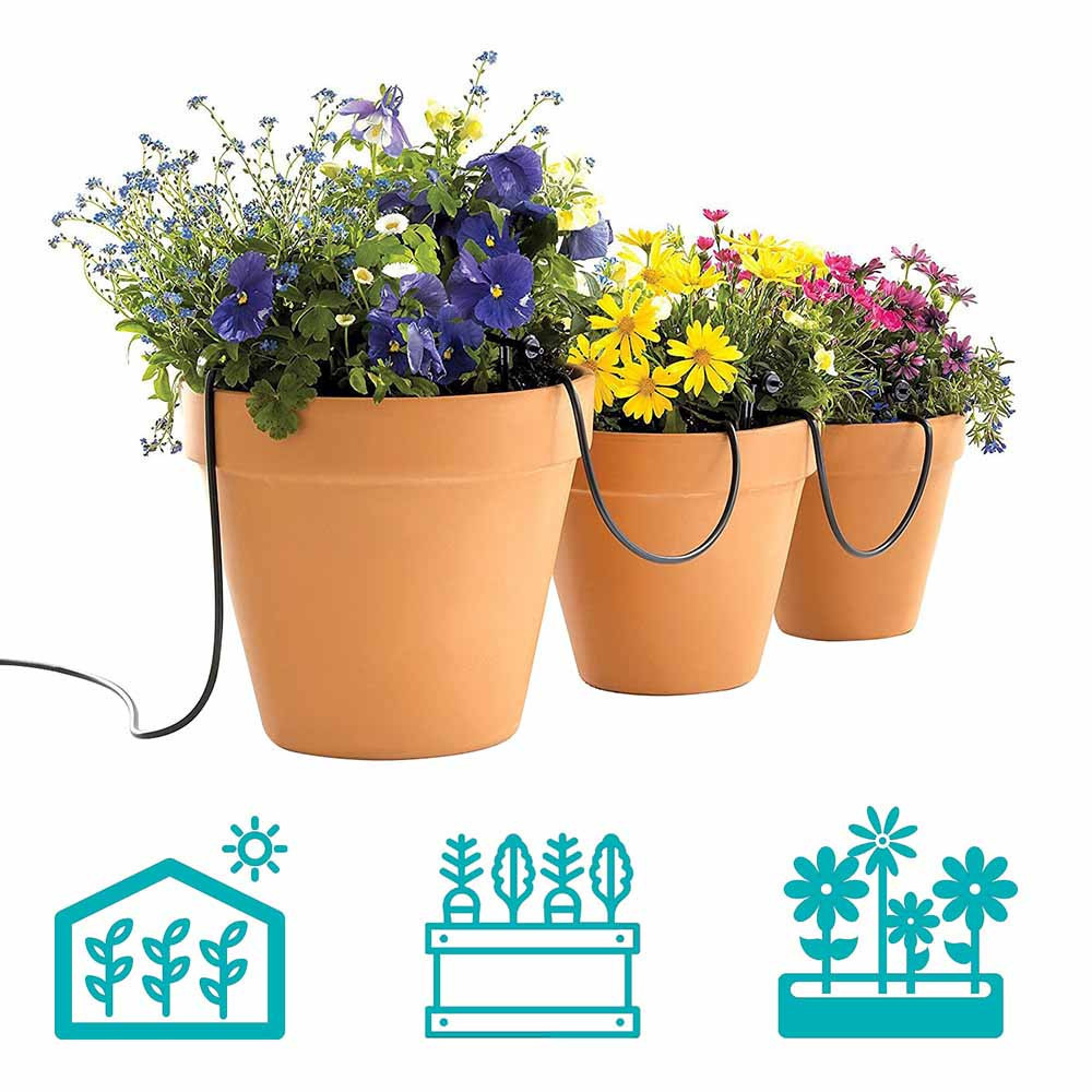 Tegye hatékonyabbá és víztakarékosabbá növényei öntözését ezzel az egyszerűen telepíthető csepegtető rendszerrel! A 23 méteres, vágható tömlő és a csatlakozók lehetővé teszik az öntözőhálózat testreszabását, hogy a víz közvetlenül a gyökerekhez jusson. Lassú, egyenletes vízellátásával csökkenti a vízfogyasztást, miközben optimális nedvességet biztosít. Ideális konyhakertek, virágágyások vagy üvegházak számára, így növényei mindig megfelelő gondoskodásban részesülnek!