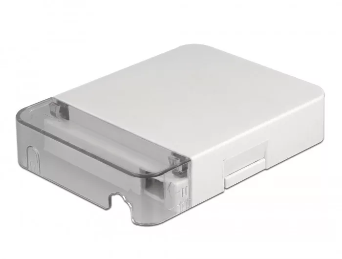 Ez a Delock száloptikai csatlakozódoboz falra szerelhető, és akár egy SC Simplex vagy LC Duplex száloptikai kapcsoló helyezhető el benne. Műszaki adatok 1 bemenet SC Simplex vagy LC Duplex kötésekhez Fali rögzítés: 2 x illesztő nyílás Rögzítési furatátmérő: 7 mm Csavarnyílás magassága: kb. 80 mm Fedél Szín: fehér / áttetsző Anyaga: ABS Méretek (HxSzxM): kb. 116 x 86 x 23 mm A csomag tartalma Optikai rostkapcsoló doboz 2 x hőre zsugorodó kötésvédelem 2 x csavar 2 x tipli Csomag Zárható műanyag tasak Gyártó: Delock