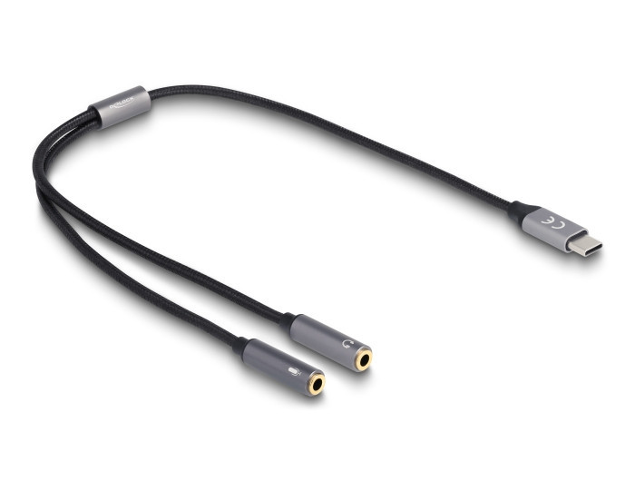Delock Fejhallgató adapter USB Type-C apa DAC 24 Bit / 96 kHz Hi-Res - 2 db. 3,5 mm-es, 3 tűs sztereo jack anya (66616)