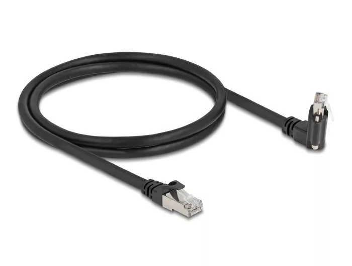 Delock GigE kamera kábel RJ45 apa 45 -ban elcsavart és 90 -ban hajlított szögekkel - RJ45 apa Cat.6 S/FTP 1 m fekete