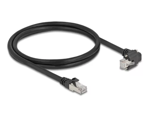 Delock GigE kamera kábel RJ45 apa 90 -ban hajlított csavarokkal - RJ45 apa Cat.6 S/FTP 1 m fekete