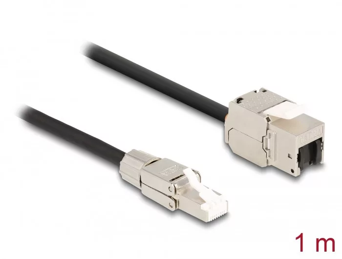 Delock Kábel RJ45 dugasz terepen szerelhető Keystone Modul RJ45 aljzathoz Cat.6A 1 m (87206)