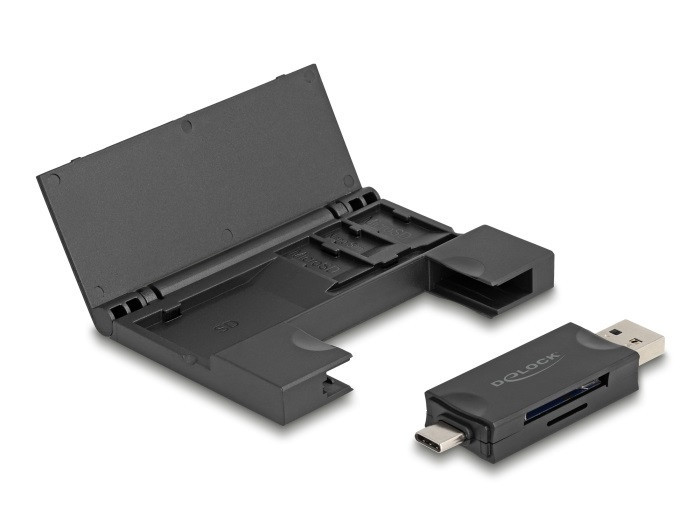 Delock Kártyaolvasó USB 5 Gbps USB Type-C / A-típusú SD és Mikro SD memóriakártyákhoz praktikus memória kártyatokkal - fekete