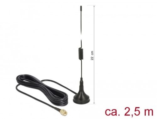 Delock LTE antenna SMA-dugó 2 dBi irányítatlan, rögzített, csatlakozókábellel RG-174 2,5 m, kültéri (89613)