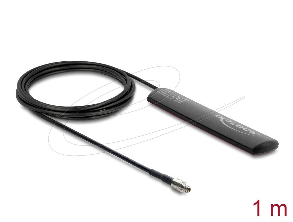 Delock LTE antenna TS9-dugó 1,5 dBi mindenirányú RG-174-es csatlakozó kábellel biztosított, 1 m öntapadós csatlakozás kültéri, fekete színű