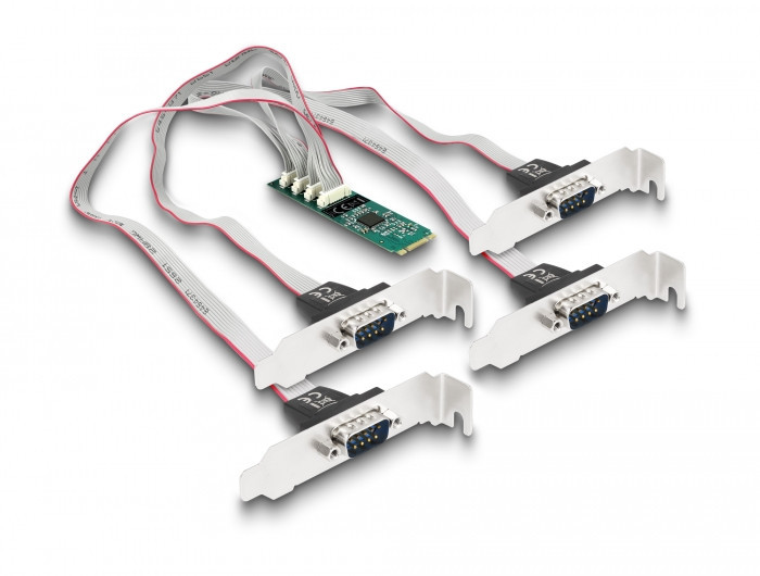 Delock M.2 kártya - 4 x soros RS-232 DB9 standard és alacsony profilú csatlakozó felületekkel