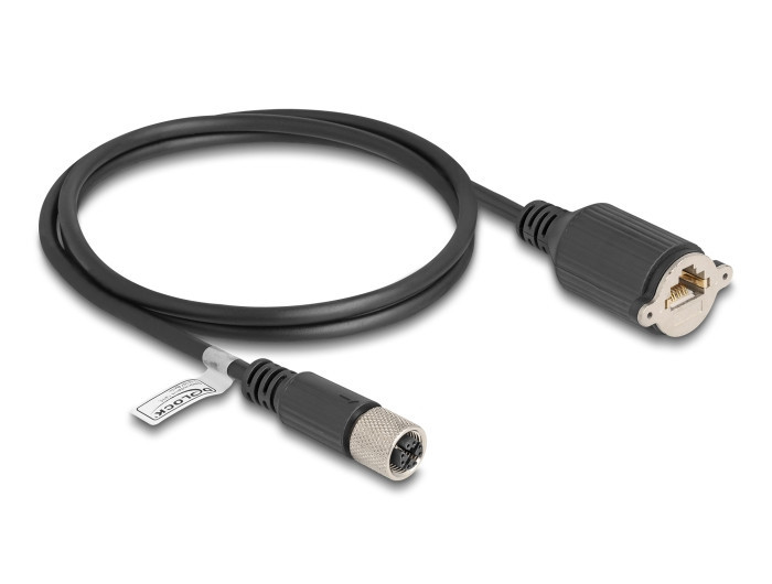 Delock M12 kábel X-kódú 8 tűs anya - RJ45 anya Cat.6A S/FTP installálásához 1 m, fekete (80460)