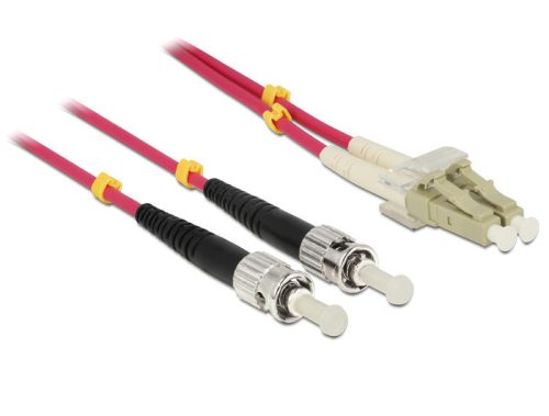 Összeköttetés hozható létre vele különböző hálózati eszközök között, úgymint NIC SFP modullal és switch, vagy mediaconverter között. Műszaki adatok - Csatlakozások: LC duplex > ST duplex - Multimód OM4 kábel - Optikai szál: 50/125um - Kerámia érvégek, por elleni védelemmel - LSOH kábel - Szín: lila - Kábelhossz: kb.3m Rendszer követelmények -Szabad LC duplex csatlakozás A csomag tartalma -optikai kábel Csomagolás Műanyag tasak Gyártó: Delock Szélesség cm: 15 Hosszúság cm: 20 Magasság cm: 1