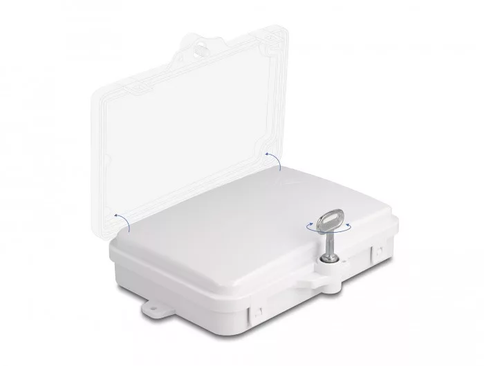 Ez a Delock zárható elosztódoboz falra szerelhető, optikai kábelek és csatlakozók védőburkolataként szolgál. Az elosztódoboz legfeljebb hat SC Simplex vagy LC Duplex csatlakozót tud elhelyezni. Összekötő tálcával Az integrált illesztőtálca lehetővé teszi az egyes szálak tiszta elvezetését a fényhullámok optimális átvitele érdekében. IP65 por- és vízálló Az elosztódoboz egy kábelbemenettel és hat kábelkivezetéssel rendelkezik, amelyeket gumitömítés véd. A tömítés fokozott védelmet nyújt a szennyeződés és a nedvesség ellen az optikai kábelek beltéri és kültéri csatlakoztatásához. Leírás Száloptikai elosztódoboz FTTH alkalmazásokhoz 6 nyílás SC Simplex vagy LC Duplex csatlakozókhoz Falra szerelés Zárható Összekötőtálcával Kábelbemenet gumitömítéssel Kábelátmérő: kb. 10 mm Beltéri és kültéri használatra alkalmas Védettség: IP65 Környezeti hőmérséklet: -40 C ~ 75 C Ház színe: fehér Ház anyaga: ABS Méretek (HxSzxM): kb. 196 x 144 x 41 mm A csomag tartalma Száloptikai elosztódoboz 1 db kulcs Rögzítési anyag 6 db hőre zsugorodó toldásvédelem Csomag Doboz Gyártó: Delock