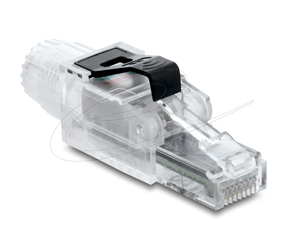 LeírásA Delock RJ45 dugaszoló szerelvény hálózati kábelek csatlakoztatására használható. A dugasz felszerelése különböző kábeltípusokra szerszám nélkül és időtakarékosan megvalósítható.Műszaki adatokCsatlakozó:1 x RJ45 dugó1 x LSACat.6A specifikációÁrnyékolatlanKompatibilis az ISO/IEC 11801, az IEC 60603-7-4, illetve az ANSI/TIA 568.2-D Cat.6A-követelményeivelTIA-568A/B bekötésTömör és sodrott huzalhoz (26 - 23 AWG)A kábel átmérője 5,5 - 7,5 mmMűködési hőmérséklet: -10 C ~ 60 CAnyaga: PCSzín: áttetsző / feketeMéretek (HxSzxM): kb. 50,9 x 17,3 x 14,2 mmA csomag tartalmaRJ45 dugaszKábelkezelőTömszelenceCsomagZárható műanyag tasakGyártó: Delock
