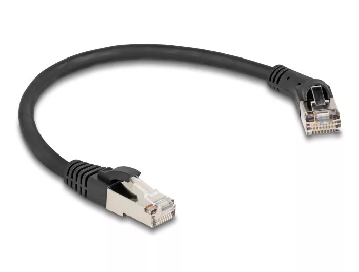 Delock RJ45 hálózati kábel Cat.8.1 S/FTP 45 -ben jobbra hajlított apa egyenes apa, akár 40 Gbps, 0,25 m, fekete (80626)