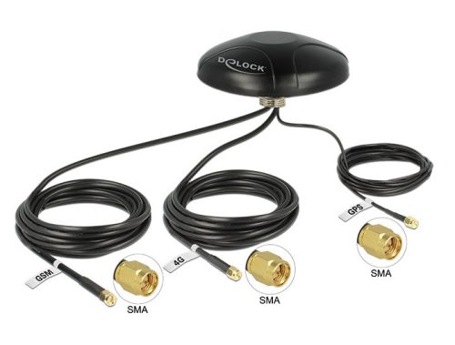 Delock Többsávos LTE UMTS GSM GPS GPS SMA antenna minden irányú tetőre szerelhető kültéri antenna (12455)