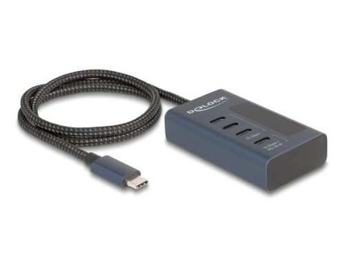 Delock USB 10 Gbps hub 4 db. USB Type-C porttal, amelyből 3 adat csatlakoztatási felület és egy adat és 20 Watt-os PD tápjelzéssel (64189)