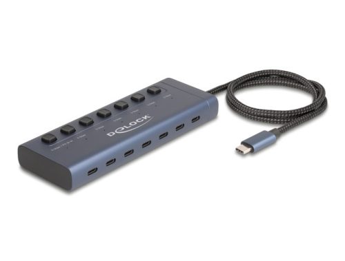 Delock USB 5 Gbps hub 7 USB Type-C porttal és kapcsolóval, melyből 6 adatport és egy adat és 20 Wattos PD port (63410)