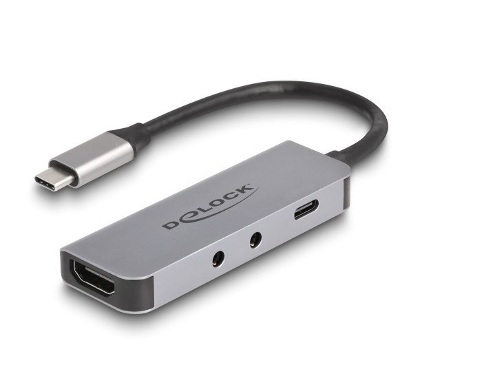 Delock USB Type-C adapter - HDMI 4K 60 Hz és fejhallgató, valamint mikrofonhoz port + USB Type-C csatlakozó PD 95 W (61064)