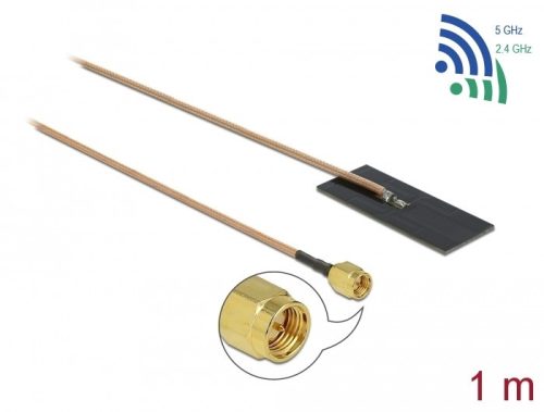A Delock antenna lehetővé teszi a 2,4 GHz + 5 GHz-es WLAN sávok beltéri használatát. Műszaki adatok Csatlakozó: 1 x SMA-dugó Frekvenciatartomány: 2400 - 2500 MHz 5150 MHz - 5875 MHz Bluetooth, WLAN 2,4 / 5,0 GHz, ZigBee 2,4 GHz, ISM Antennaerősítés: 0,5 - 1,2 dBi VSWR: 2,5 Impedancia: 50 Ohm Szerelési mód: öntapadós Működési hőmérséklet: -10 C ~ 55 C Burkolat anyaga: FR4 Szín: fekete Kábel: koaxiális Kábel típusa: RG-178 Kábel színe: fekete Kábelátmérő: kb. 1,8 mm Kábel csillapítás: 2,9 dB @ 2,4 GHz / méter Legkisebb hajlítási sugár: 7,5 mm Méretek (H x Sz): kb. 40,00 x 14,65 mm Kábelhosszúság a csatlakozóval együtt: kb. 1 m Rendszerkövetelmények Egy szabadvagy SMA csatlakozással A csomag tartalma Antenna Csomag Poly bag Gyártó: Delock Szélesség cm: 8 Hosszúság cm: 13 Magasság cm: 0,5