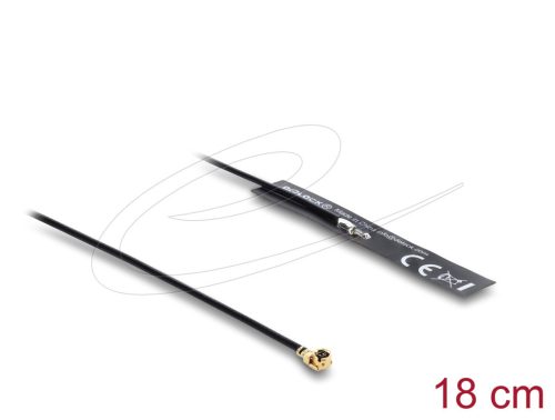 Delock WiFi 2,4 GHz Antenna I-PEX Inc., MHF I-dugó 3,4 dBi mindenirányban rögzíthető, csatlakozó kábellel (1.13, 18 cm), NYÁK-lap, belső öntapadós