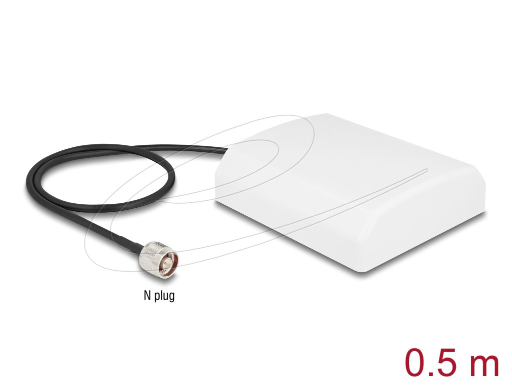 Delock WiFi 2,4 GHz-antenna, N-csatlakozódugó, 8 dBi kétirányú, csatlakozókábellel RG-58, 50 cm, fehér, kültéri