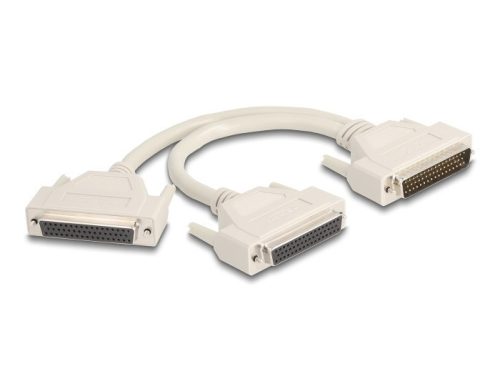 Ez a Delock osztott kábeles adapter megosztja és összeköti a D-Sub 50 apán érkező jeleket két D-Sub 50 anyára. Mind a 50 jel sáv elérhető 1:1-es adatátadásra ezzel az Y kábellel. Ez teszi az elosztót alkalmassá számítógépekhez, gépekhez, nyomtatókhoz stb. Műszaki adatok Csatlakozó: 1 x D-Sub 50 érintkezős dugó csavarokkal 2 x D-Sub 50 érintkezős hüvely csavarokkal Pólus kiosztás: 1:1 Kábel vastagsága: 28 AWG Kábelátmérő: kb. 9,0 mm Csavar típusa: #4-40 UNC Anyaga: PVC Szín: bézs Kábel hossza: kb. 17 cm (csatlakozók nélkül) kb. 30 cm (csatlakozók együtt) A csomag tartalma Adapter Csomag Zárható műanyag tasak Gyártó: Delock