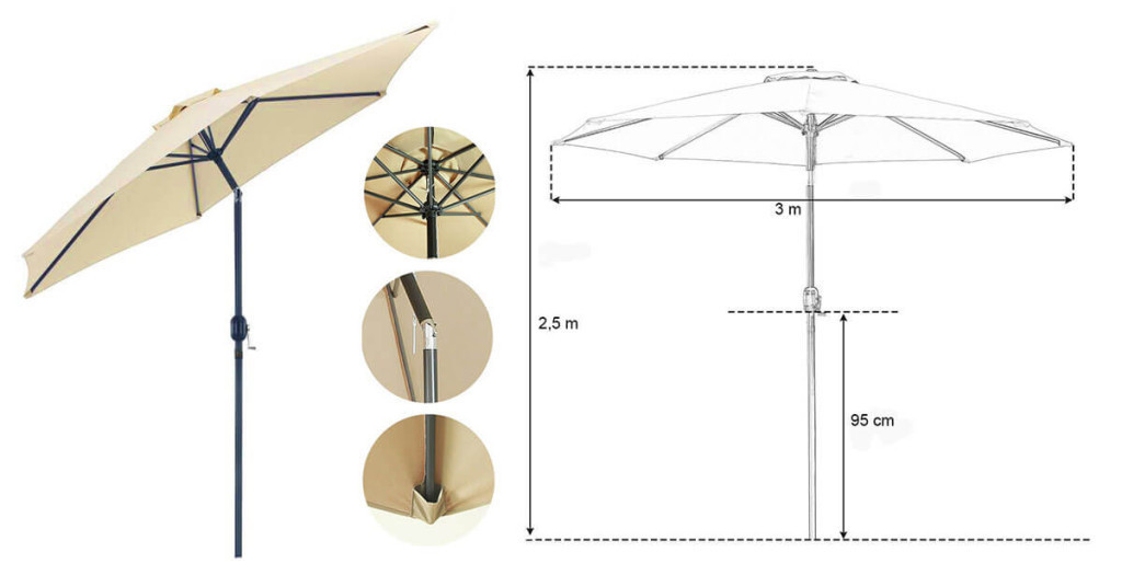 A napernyő állítható, dönthető mechanikájának köszönhetően mindig a megfelelő pozícióba irányíthatod az árnyékolást, így egész nap komfortosan pihenhetsz alatta.
