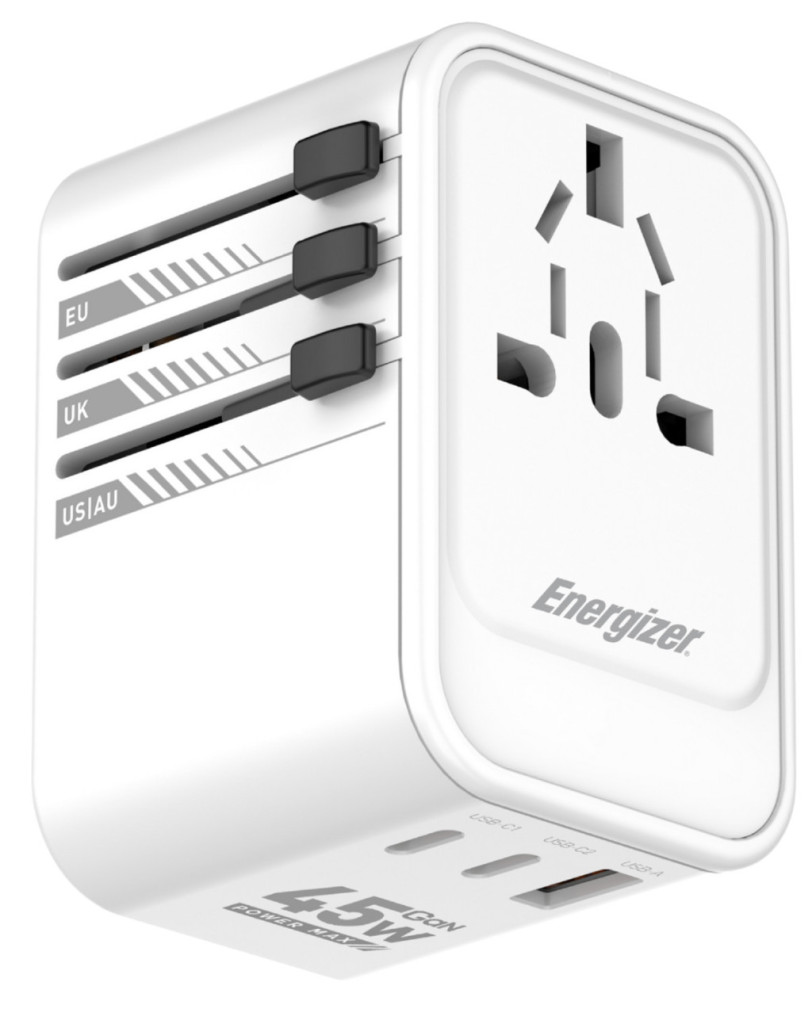 Energizer ETC450 univerzális csatlakozású (EU, UK, US, AU) utazó adapter és PD gyorstöltő max. 45W töltési teljesítménnyel