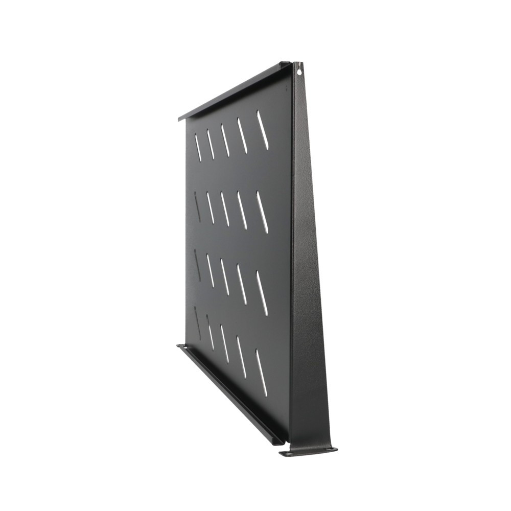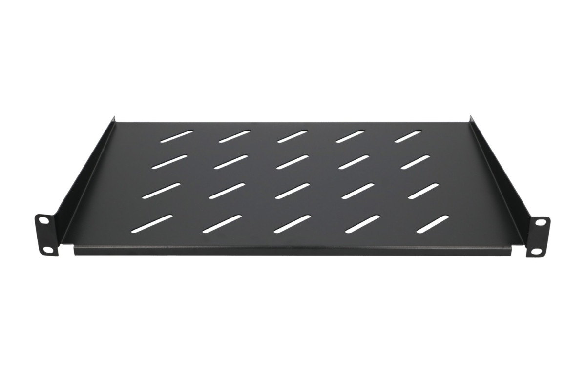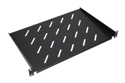 Fixed shelf with a width of 483mm, dedicated for 19'' RACK hanging cabinets. With its help, it is possible to mount devices in the cabinet that do not have RACK 19'' enclosures. Made of steel sheet in black color. The shelf is fixed in 4 points, which guarantees its stability. RACK standard cabinets are widely used in server rooms, recording studios, industrial premises, teletechnology and power engineering.