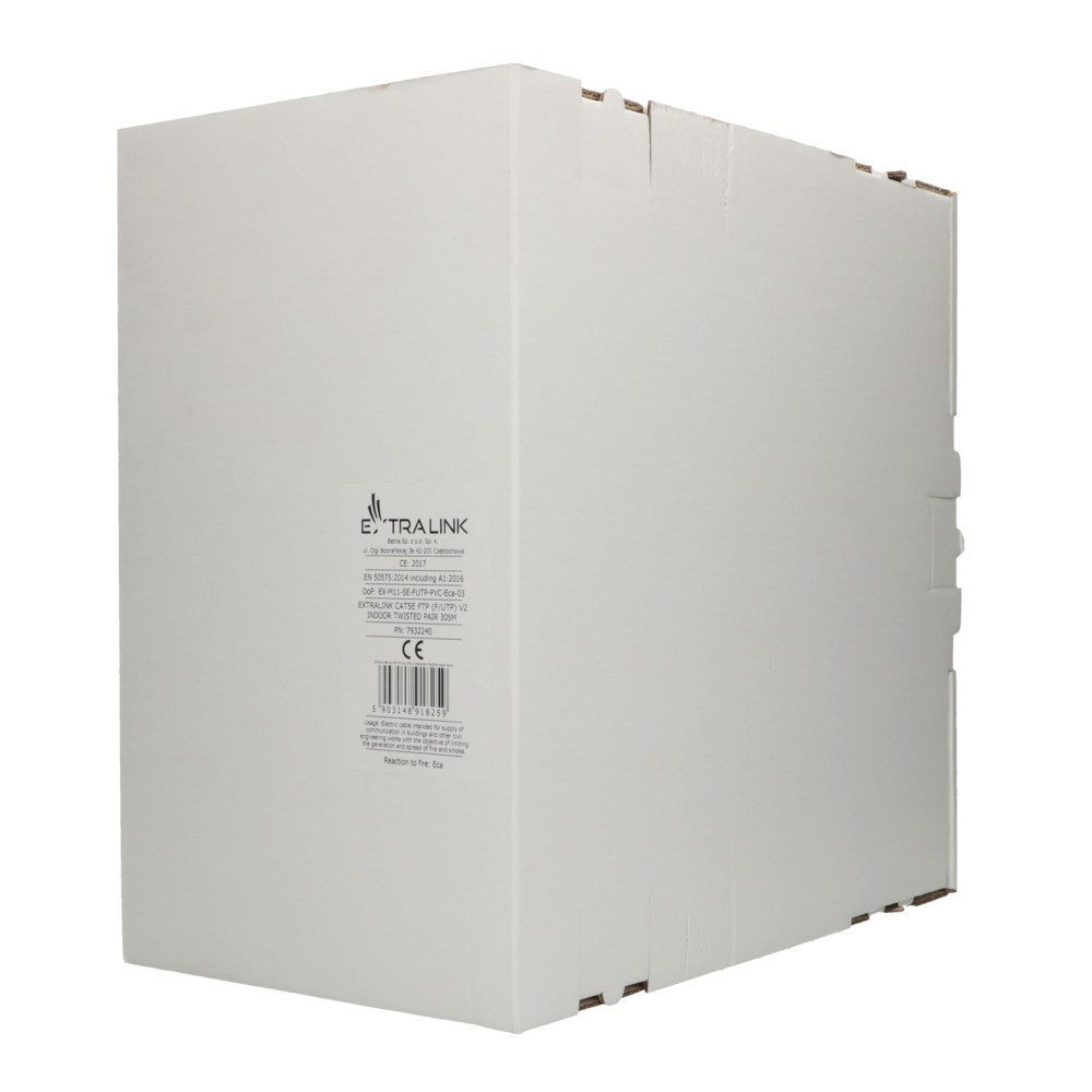 Network cable F/UTP cat.5e. Package that measures 305 meters. The cable is made of pure copper and encased in HDPE sheath with diameter of 1.02mm. The cable is shielded with 0.05mm aluminum foil and has an additional grounding conductor. Outer sheath PE 0.55mm thick. The cable is designed for indoor use.