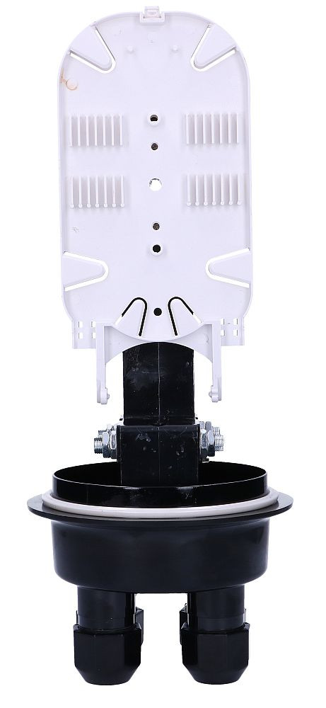 The included fiber optic trays give the possibility of laying 24 splice guards. The mounting brackets ensure that the cable is securely gripped and prevents it from slipping out.