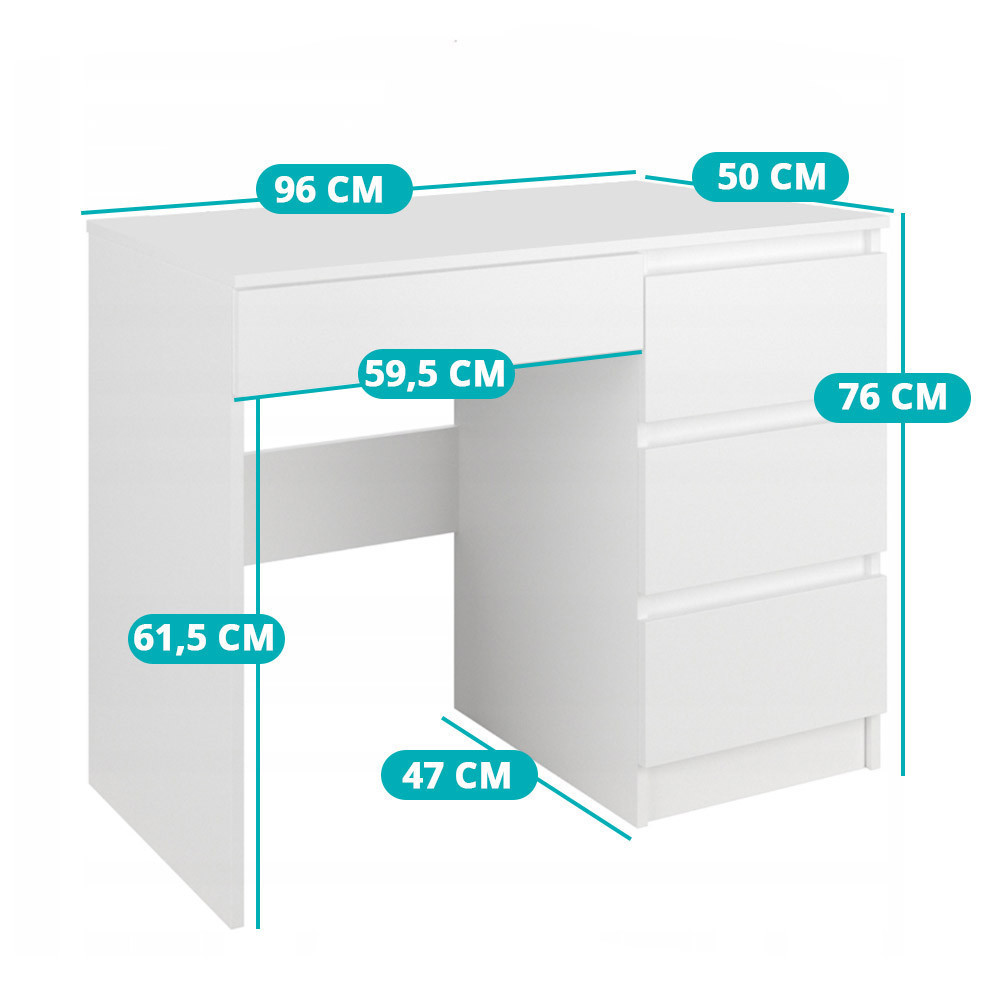 Ezzel a modern, minimalista stílusú íróasztallal tökéletesen kiegészítheted dolgozószobád vagy tanulósarkod. Kompakt méretének köszönhetően nem foglal sok helyet, miközben elegendő tárolókapacitást biztosít a mindennapi munkához vagy tanuláshoz.