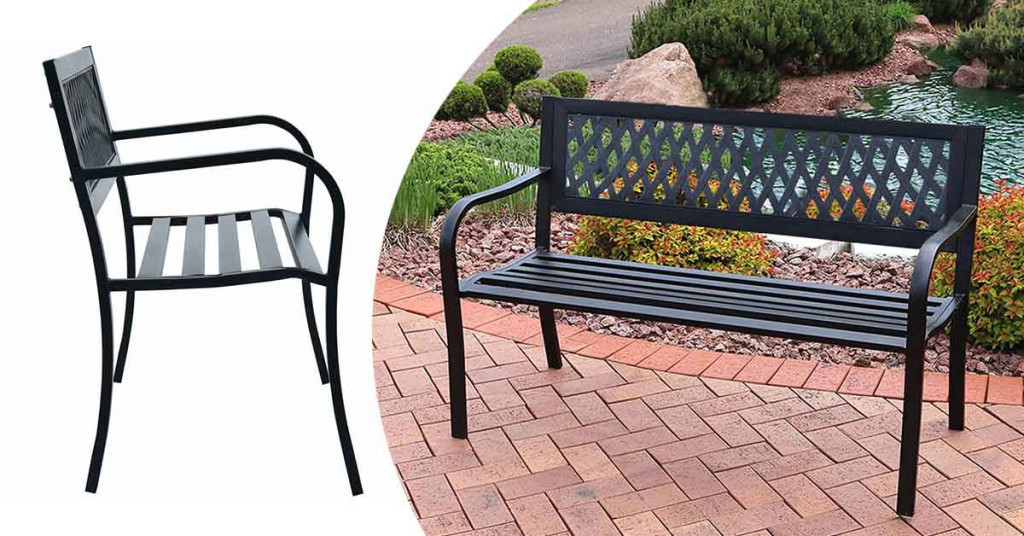 A fekete szín és a rácsos háttámla elegáns, mégis visszafogott stílust képvisel, amely könnyedén illeszkedik bármilyen kültéri környezetbe. A pad esztétikus kiegészítője lehet a kertnek, miközben funkcionálisan is megállja a helyét.