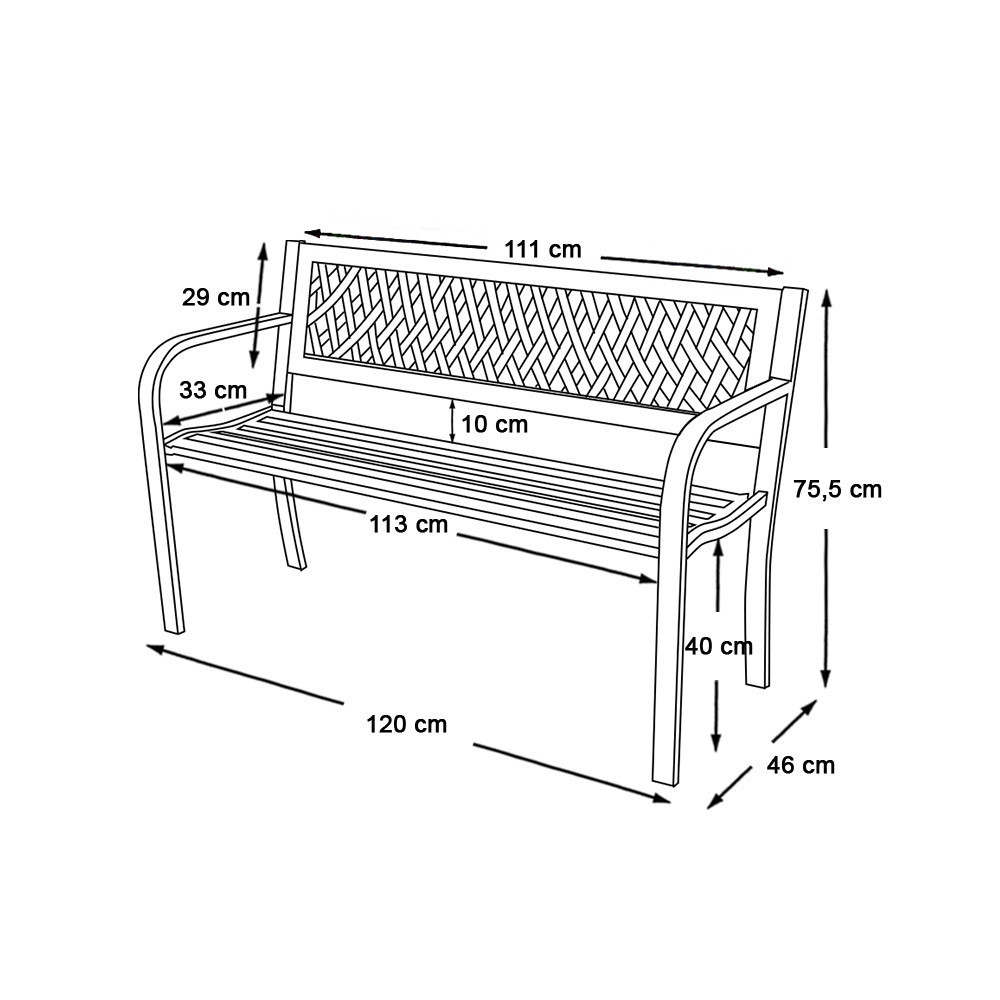 Ez a kültéri fém kerti pad ideális választás kertbe, teraszra vagy akár parkba is. Elegáns megjelenése mellett erős, időtálló fém vázzal rendelkezik, amely kényelmes pihenést biztosít két személy számára. Letisztult dizájnja jól illik bármilyen stílusú környezetbe, teherbírása pedig eléri a 200 kg-ot.