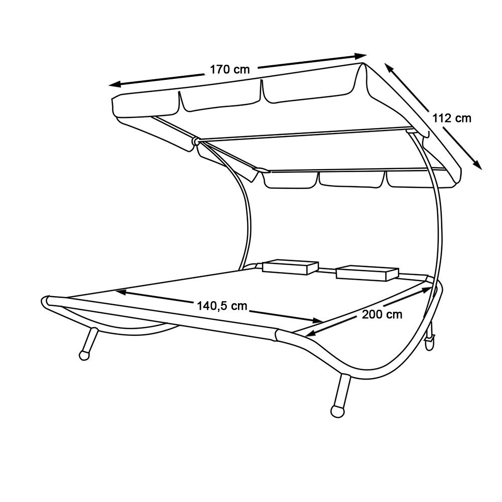 A kétszemélyes kerti ágy ideális választás páros kikapcsolódáshoz. Tágas fekvőfelülete kényelmes elnyújtózást biztosít, akár árnyékban, akár napsütésben szeretnél pihenni.
