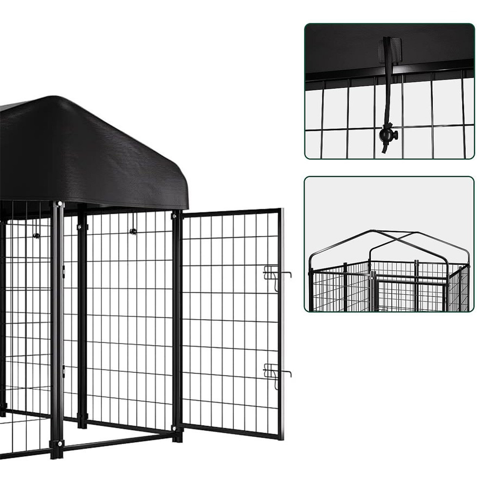 A kutyaketrec ajtaja kifelé és befelé is nyitható, így a be- és kijárás kényelmes és biztonságos. A hálós szerkezet emellett kiváló átláthatóságot biztosít.