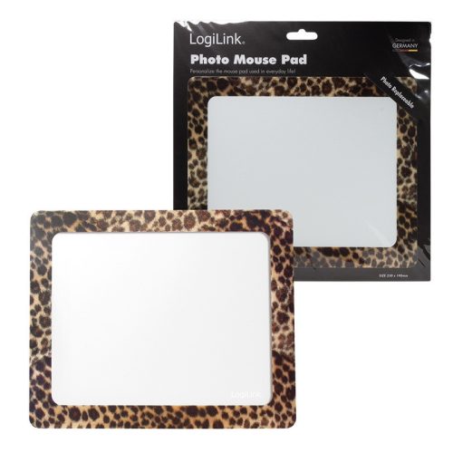 LogiLink® egérpad fotóeremmel, " Leopard" Extra vékonyÖntapadós hátAz állati bőr mintázatábanVáltoztasson képeket, jegyzeteket vagy naptárakat gyorsan és egyszerűenTegye egyedivé egérpadját. Helyezzen el egyszerűen fényképeket, rajzokat vagy képeket a fedél alatt. Bármikor lecserélheti őket egy másik képre.Ez a szöveg gépi fordítással készült.Műszaki adatok: Méret, mélység: 190 mm · Méret, szélesség: 230 mm · Tartalom: 1 db · Termék típus: Egérpad · További műszaki adatok: Leopárd minta fotó nyílással · Wireless Charging function: Nem