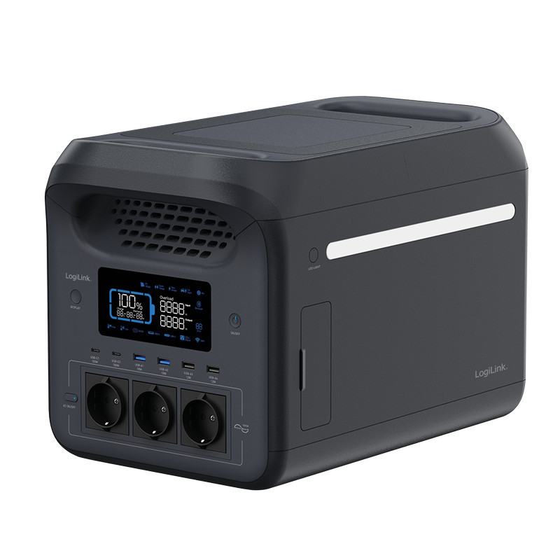 Logilink Hordozható erőmű, 1800 W, LiFePO4 akkumulátor, Tuya kompatibilis, fekete (PPS1800)