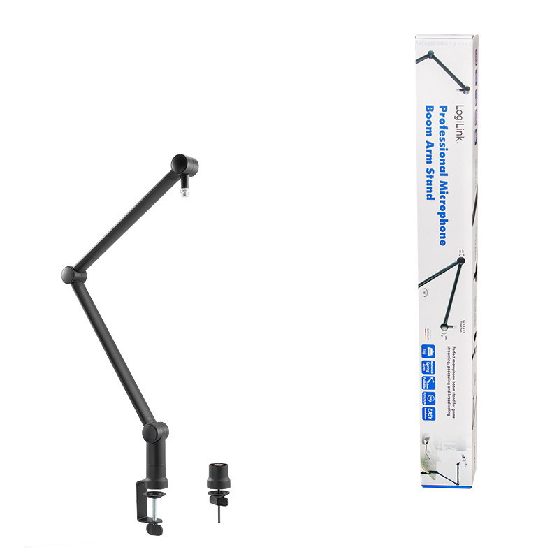 Kettős felfüggesztés mindegyik karon, hogy megvédje a mikrofont a rázkódástól, a hirtelen leejtéstől és a zajtól Alkalmas a legtöbb vokális és dinamikus mikrofonhoz (3/8" és 5/8" univerzális menet) Összecsukható ollókaros kialakítás a kompakt tárolás és a könnyű szállítás érdekében Felpattintható kábeltartó a kábelek rendezett tárolására 360 -ban forgatható kar forgatógombbal a rugalmas szögbeállítás és váltás érdekében Általános termékadatok: Súly: 1,5 kg Magasság: 109,5 cm Szélesség: 7,2 cm Hossza: 6,1 cm Gyártó: Logilink Szélesség cm: 11 Hosszúság cm: 98,5 Magasság cm: 8