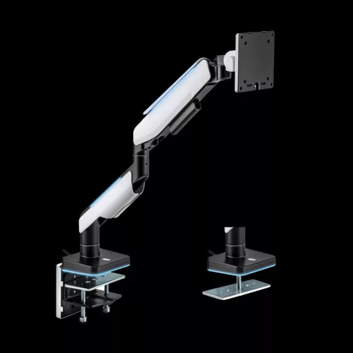 Az alumínium és acél felhasználásával készülő konzol masszív és tartós, így hosszú élettartamot biztosít. Az asztali bilincs és átmenő átvezetés rögzítési lehetőségek révén a konzolt különféle asztaltípusokhoz használhatja, stabilan rögzítve azt.