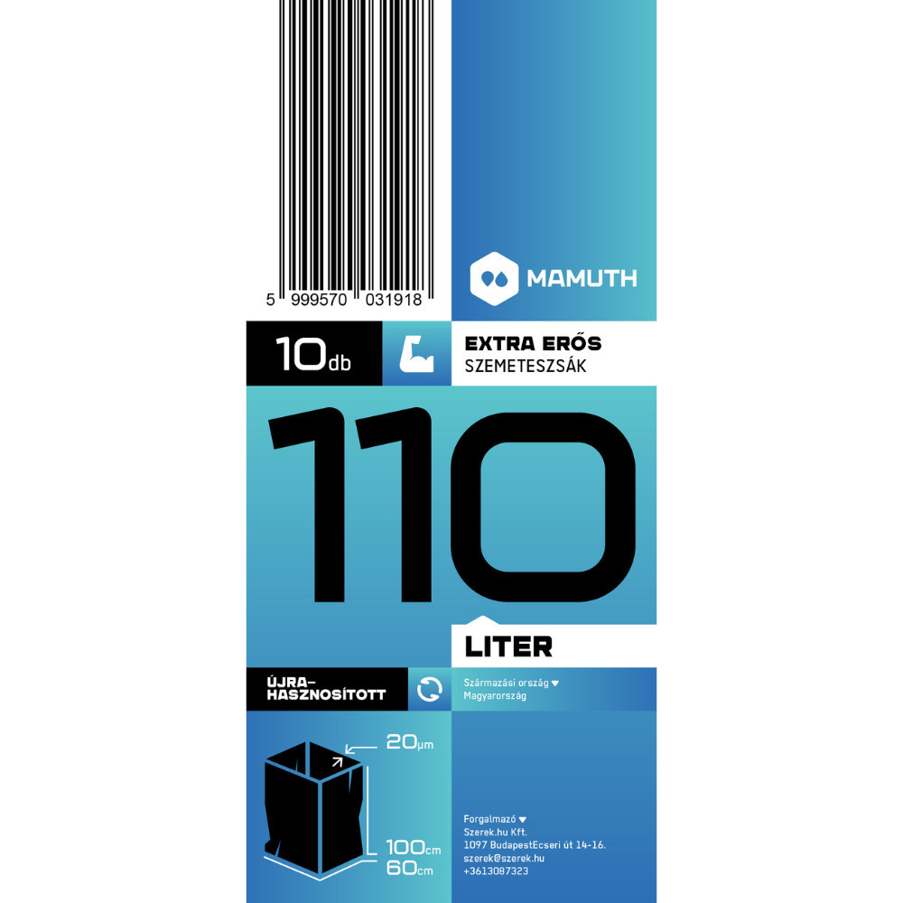 Egy zsák 135 liter űrtartalmú, 110x70cm-es. Egy tekercs 10 db zsákot tartalmaz. 1 kartonban 20db tekercs található. 21 mikron vastagságú.