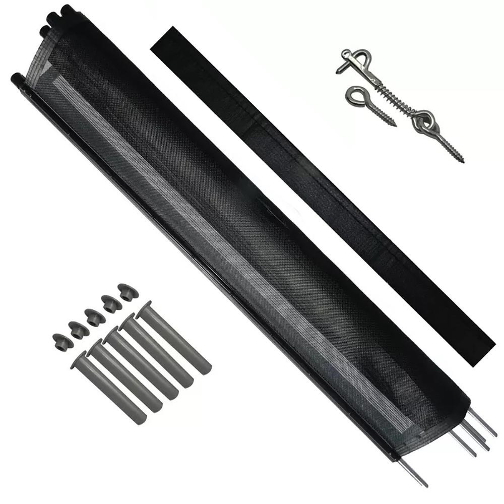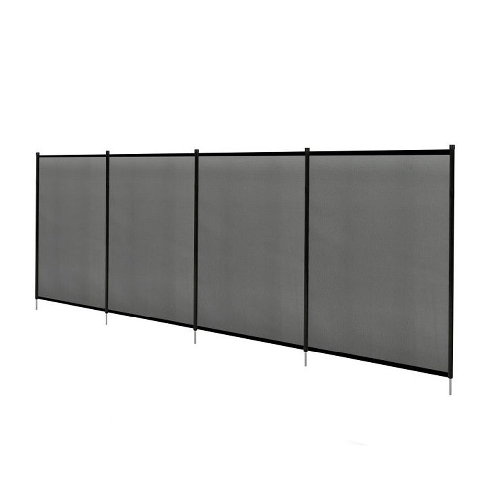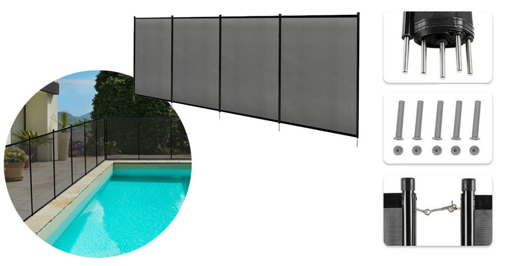 A csomagban található rögzítők segítségével a földbe fúrt lyukakba helyezhető, így stabilizálható a szerkezet. Ha már nincs szükség rá, összehajtva könnyedén tárolhatod a paravánt, egy szerényebb méretű háztartásban is találsz neki helyet.Több kerítés is egymáshoz kapcsolható, így a medence méretétől függetlenül, több csomag vásárlása esetén összekapcsolhatod őket.