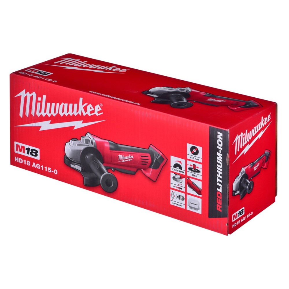 Milwaukee HD18 AG-115-0 akkus sarokcsiszoló 18 V | 115 mm | 9000 RPM | Szénkefés | Alapgép