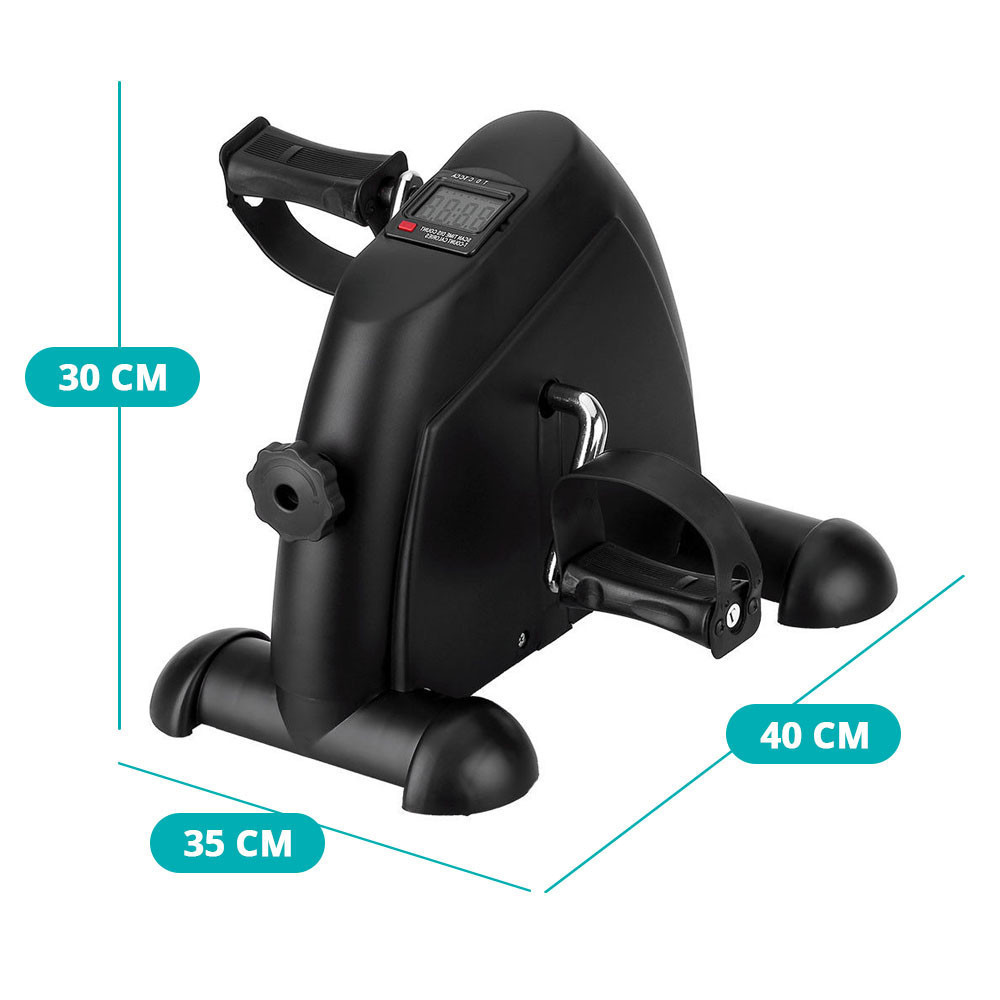 Használható a lábak és karok erősítésére is, így komplex mozgásformát biztosít. A pedálokat két irányban is tekerheted, miközben a kijelző minden adatot rögzít: idő, távolság, tekerések száma, kalóriaégetés.