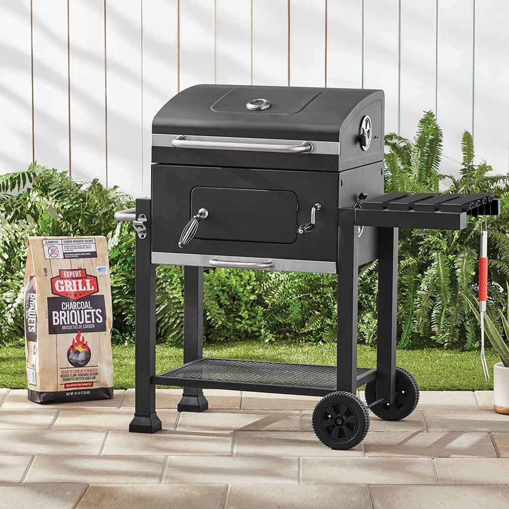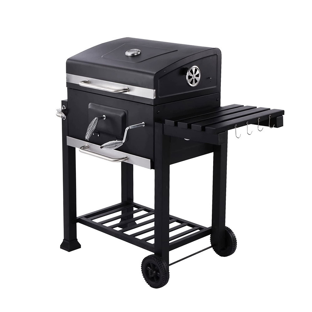 Ez a multifunkciós grillsütő ideális választás, ha a kertben változatos ételeket szeretnél készíteni. A praktikus oldalsó tálca, melegítőrács és üvegnyitó mind hozzájárul a kényelmes használathoz. A lecsukható fedél megőrzi a füstaromákat, míg a kerekek megkönnyítik a grill mozgatását.