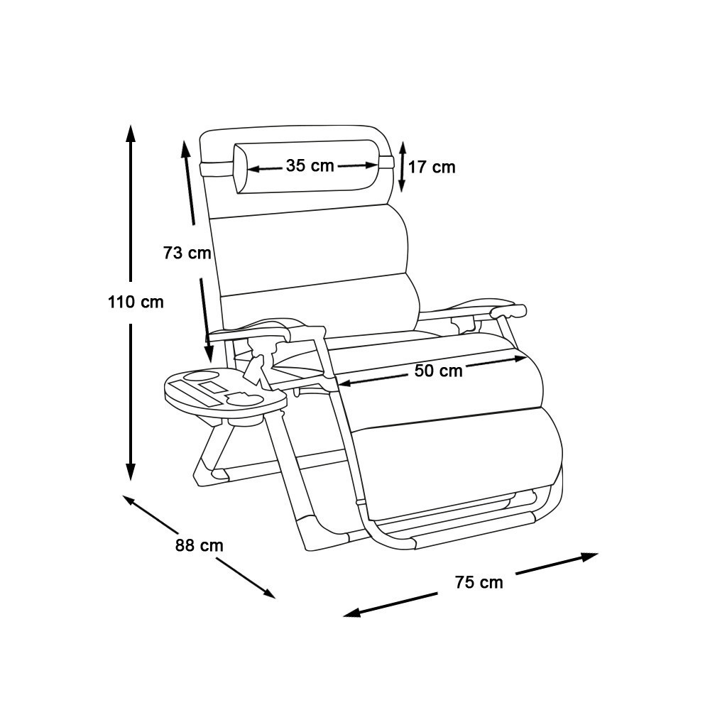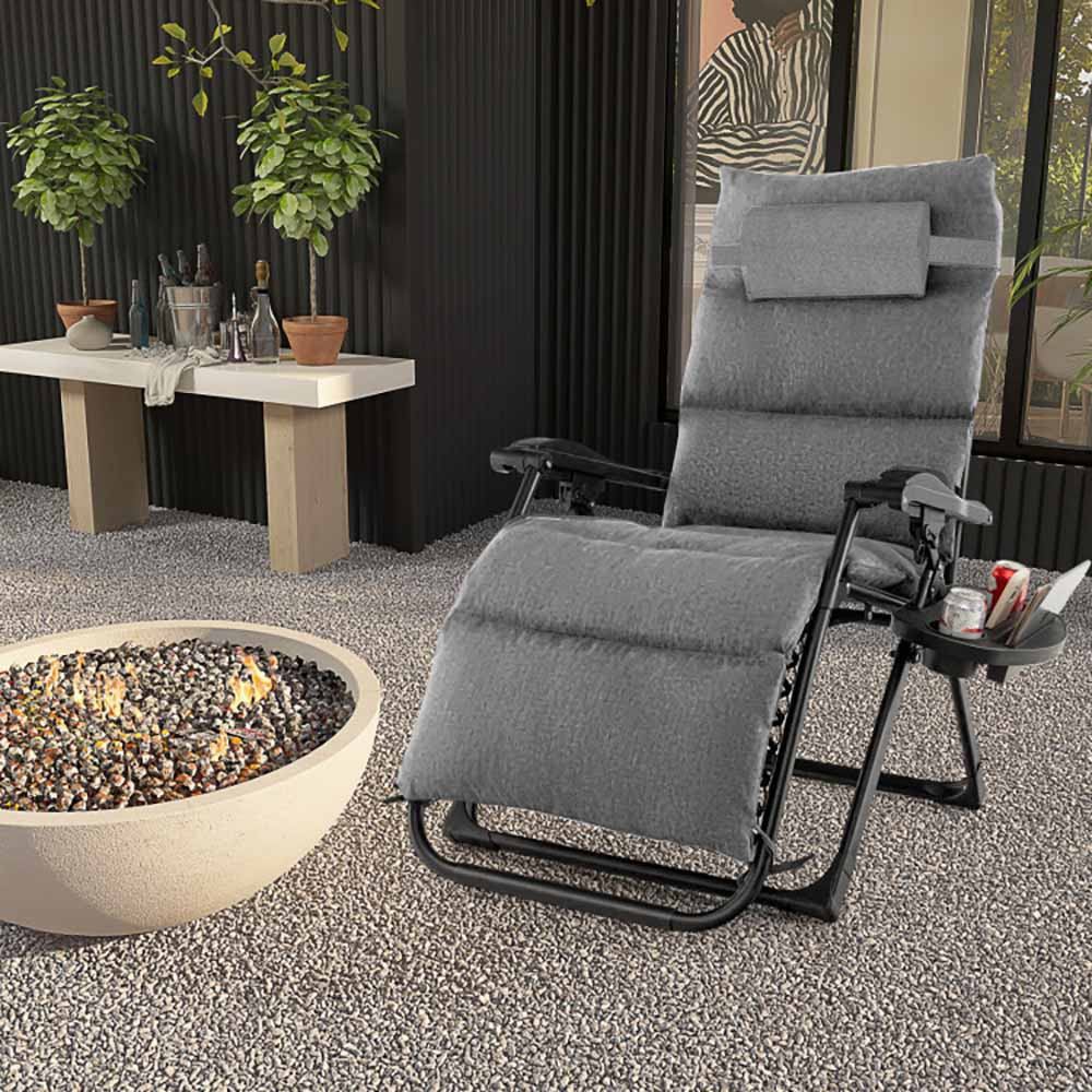 A párnázott zéró gravitációs szék ideális társ a pihenéshez, legyen szó nyári napozásról, délutáni olvasásról vagy akár esti beszélgetésekről a teraszon. Extra kényelmet biztosít a puha ülőfelület és a levehető fejpárna, miközben praktikus kiegészítői gondoskodnak arról, hogy minden fontos dolog kéznél legyen.