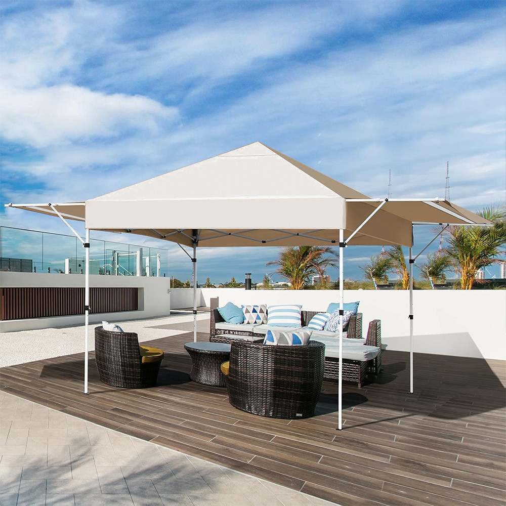 Ez a bézs színű, vízálló pavilon ideális választás kerti rendezvényekhez, vásárokhoz vagy strandoláshoz. A stabil, horganyzott acélváz biztos tartást nyújt, míg az állítható árnyékoló és félhátfal extra védelmet ad napsütés és szél ellen. Praktikusan szállítható és egyszerűen felállítható bárhol, ahol árnyékra van szükség.