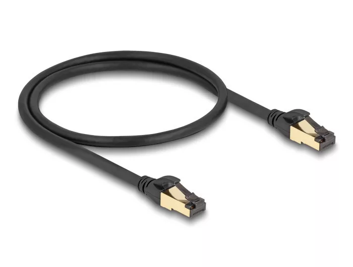 Delock RJ45 hálózati kábel Cat.6A apa - apa S/FTP fekete 50 cm - Cat.7 nyers kábellel, mely alkalmas bel- és kültéri használatra (80247)