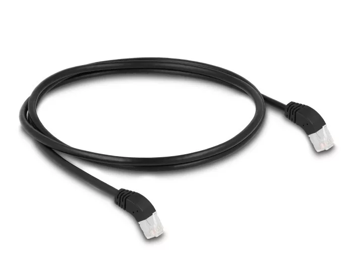 A Delock hálózati kábellel különböző hálózati eszközök kapcsolhatók össze pl. egy hálózati vezérlő egy switch-hez vagy egy patch panelhez. Hajlított csatlakozó fejjel A hajlított csatlakozó lehetővé teszi helytakarékos installációt szűk helyeken eszközök mögött vagy hálózati kabinetekben. Műszaki adatok Csatlakozó: 1 x RJ45 apa 45 fokban felfelé hajló 1 x RJ45 apa 45 fokban felfelé hajló Cat.6A specifikáció Árnyékolt (S/FTP) Sávszélesség: 500 MHz Kábel vastagsága: 26 AWG Kábelátmérő: kb. 6,0 mm Kábelborítás anyaga: LSZH (halogénmentes) Szín: fekete Hosszúság: kb. 1 m Rendszerkövetelmények Egy szabad RJ45-csatlakozóhüvely A csomag tartalma Patch kábel Csomag Zárható műanyag tasak Gyártó: Delock