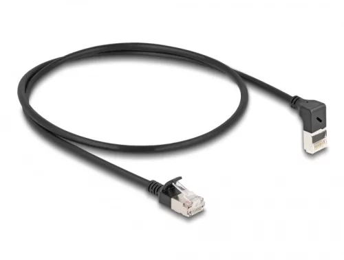 Delock RJ45 hálózati kábel Cat.6A S/FTP vékony 90 fokban felfelé hajló / egyenes 0,5 m fekete